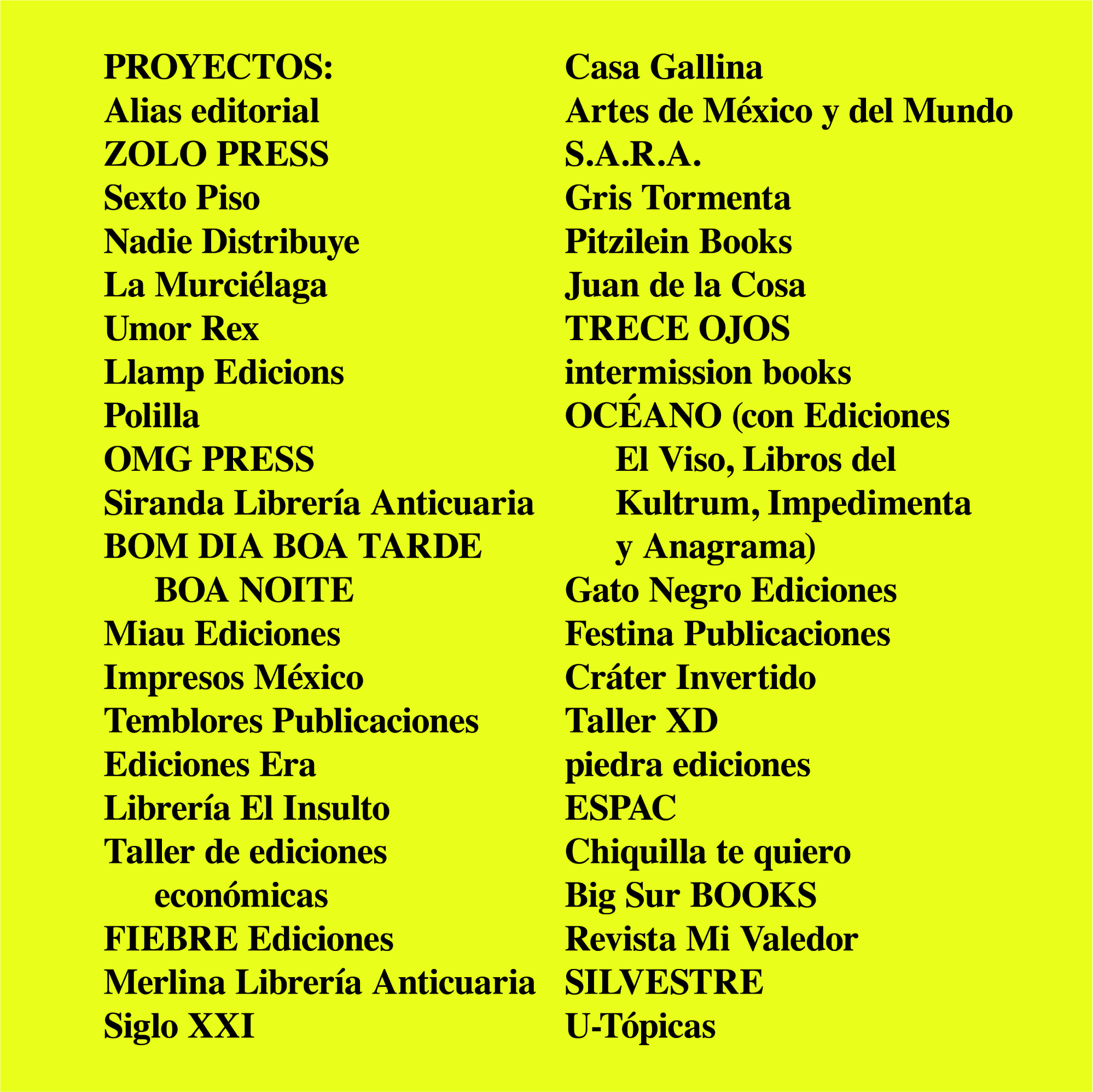 Con 𝗲𝗻𝘁𝗿𝗮𝗱𝗮 𝗴𝗿𝗮𝘁𝘂𝗶𝘁𝗮 y la participación de más de 𝗰𝘂𝗮𝗿𝗲𝗻𝘁𝗮 𝗽𝗿𝗼𝘆𝗲𝗰𝘁𝗼𝘀 entre los cuales se incluyen sellos independientes, librerías, proyectos artísticos híbridos y de arte impreso, fanzines, revistas o distribuidoras, la feria busca promover el trabajo independiente de cada participante y cohesionar a la comunidad.
