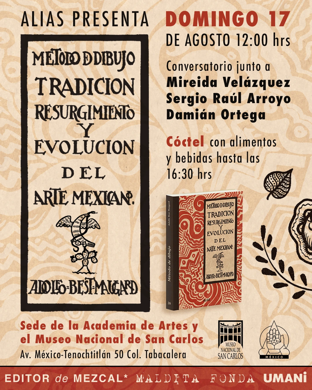 🔥¡Acompáñanos en el lanzamiento de 𝙈𝙚́𝙩𝙤𝙙𝙤 𝙙𝙚 𝙙𝙞𝙗𝙪𝙟𝙤. 𝙏𝙧𝙖𝙙𝙞𝙘𝙞𝙤́𝙣, 𝙧𝙚𝙨𝙪𝙧𝙜𝙞𝙢𝙞𝙚𝙣𝙩𝙤 𝙮 𝙚𝙫𝙤𝙡𝙪𝙘𝙞𝙤́𝙣 𝙙𝙚𝙡 𝙖𝙧𝙩𝙚 𝙢𝙚𝙭𝙞𝙘𝙖𝙣𝙤 de Adolfo Best Maugard! La cita es en el auditorio y el patio oval de la sede del Museo Nacional de San Carlos y la Academia de Artes el domingo 17 de agosto a las 12:00 hrs.