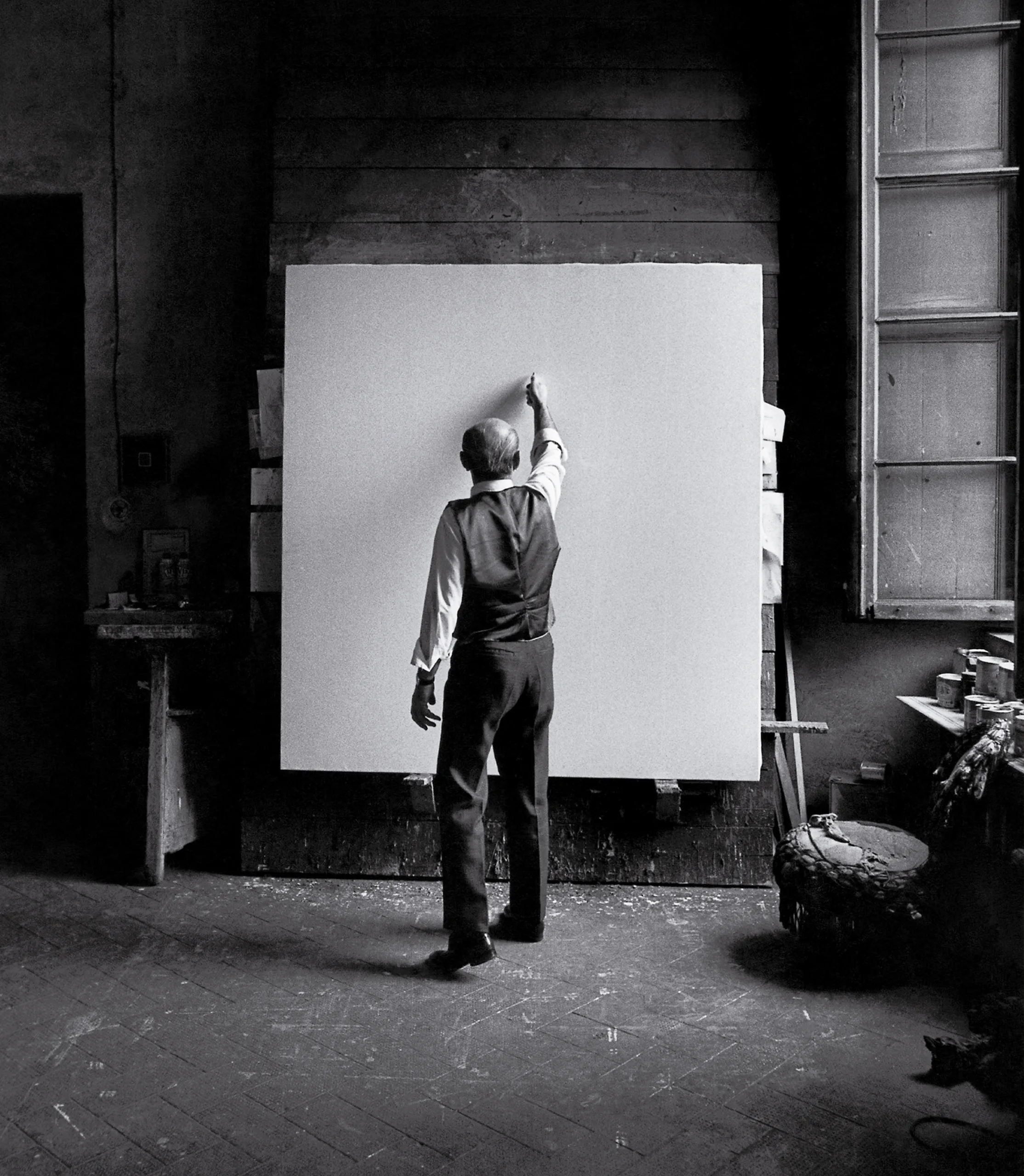Lucio Fontana (Rosario de Santa Fe, Argentina, 1899-Varese, Italia, 1968), fue un artista extremadamente prolífico, fundador del espacialismo y actor esencial del arte europeo de la segunda mitad del siglo xx. Fontana fue uno de los primeros y más importantes artistas en enfatizar la importancia del gesto en la experimentación artística. Replanteó los conceptos del espacio pictórico e incorporó en sus obras las preocupaciones de la época: la exploración del universo, la relación de la luz con el tiempo, las preguntas metafísicas del hombre ante el infinito y la existencia de Dios.
